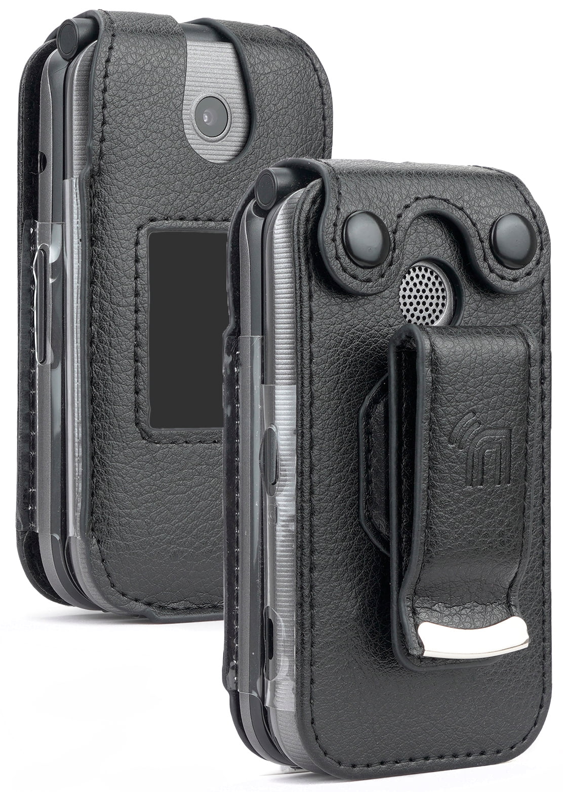 Case For Coolpad Belleza Flip Phone Nakedcellphone Black Vegan Leather Form Fit Cover With Built In Screen Protection And Metal Belt Clip For Cp3321at Walmart Com